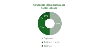 A composição média dos resíduos urbanos ajuda a entender por que o potencial de recuperação é tão grande.