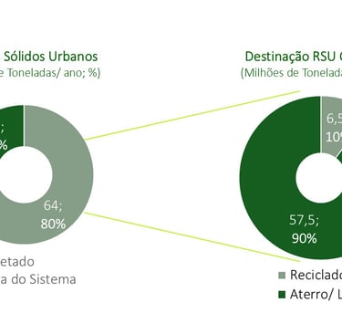Como vimos anteriormente, se aproximadamente 35% do RSU brasileiro são recicláveis, então teremos cerca de 28 milhões de toneladas de recicláveis por ano, no entanto, apenas cerca de 6 a 7 milhões de toneladas são efetivamente recicladas.